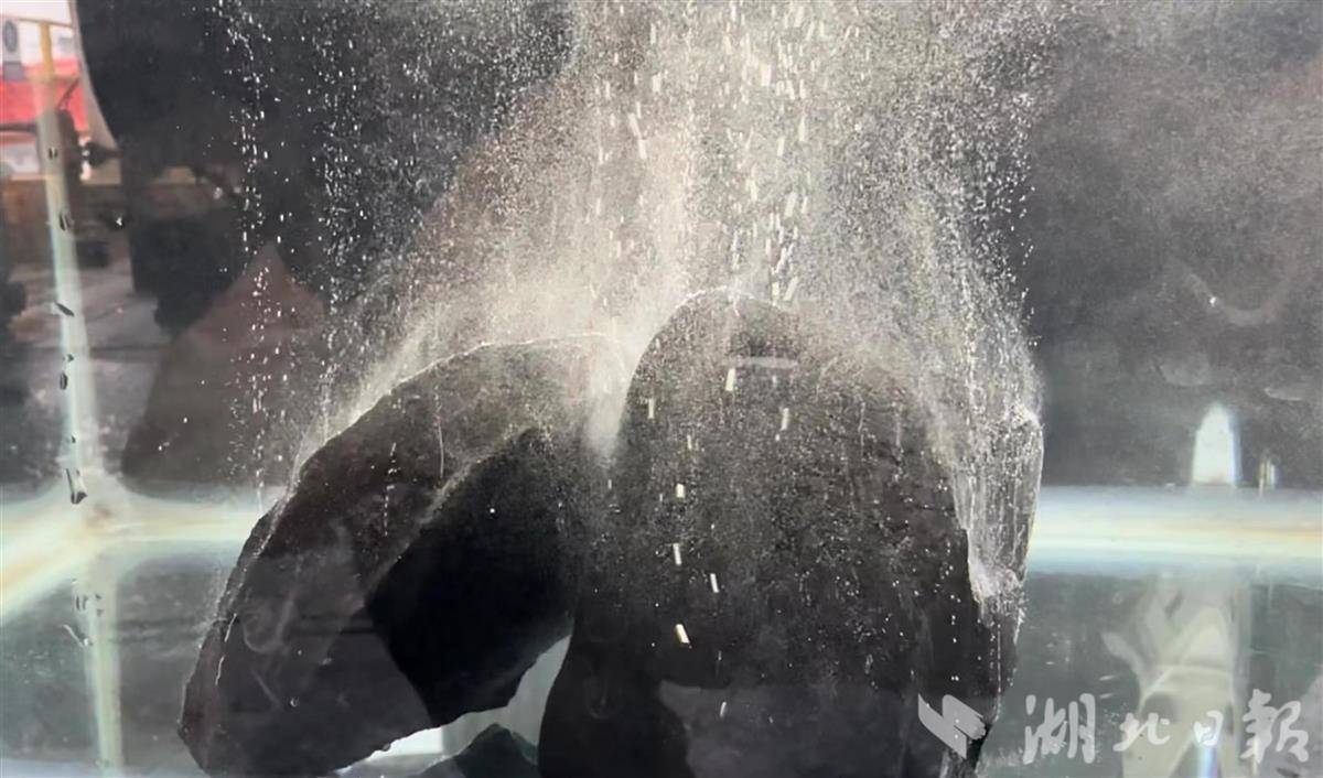 岩石在水中冒出很多气泡,显示内含大量页岩气
